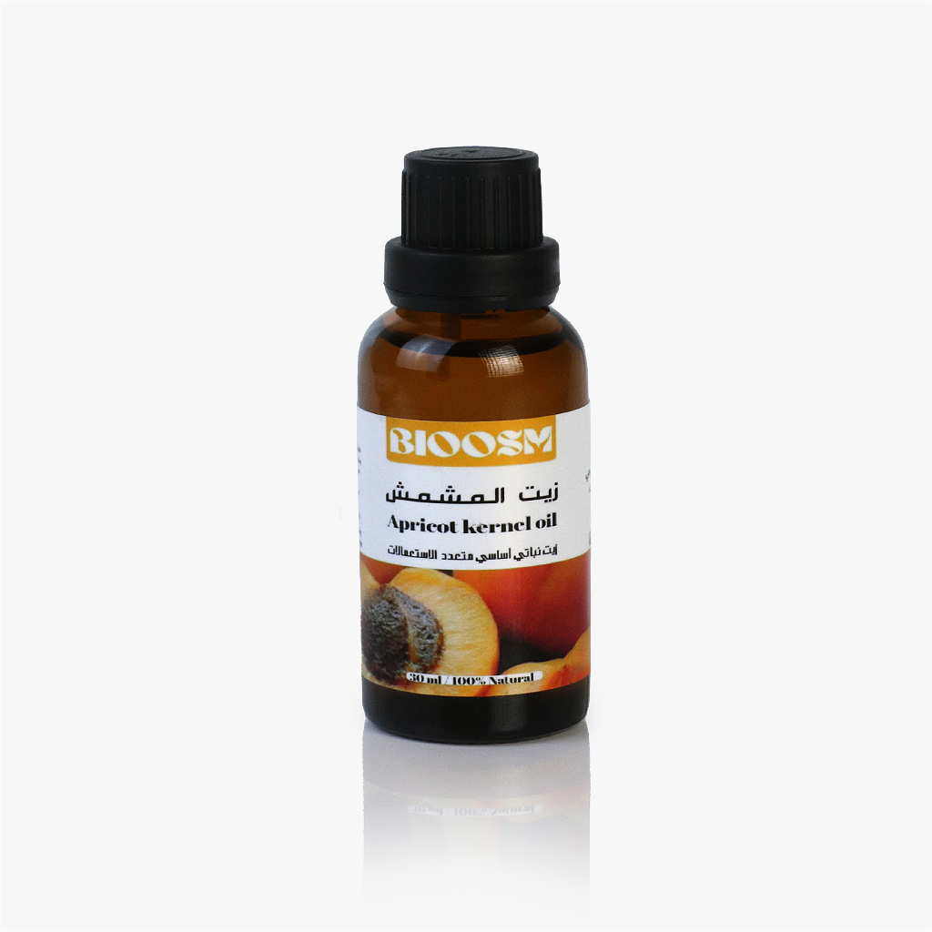 زيت المشمش الطبيعي بحجم 30ml. زيت مفيد ومغذي للبشرة والشعر، مستخلص بعناية من مصادر طبيعية.
